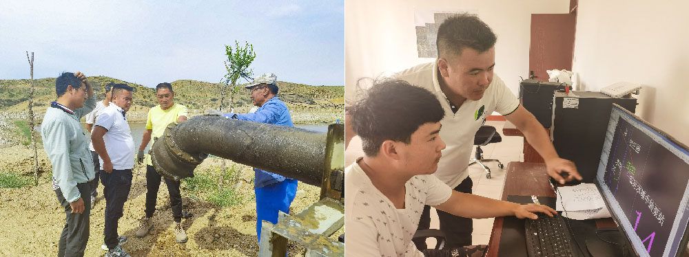 時光荏苒,現水電工組的負責人付志峰,入職美亞生態已是第6個年頭。當談及在美亞生態的6年,一向不擅咬文嚼字的付志峰卻感慨頗多,操著一口濃重的巴盟口音時不時地向筆者娓娓道來。每當不知從何憶起時,他總會用淺淺的一笑回應筆者,耐人尋味且讓人心生愉悅。 烈日炎炎下,筆者悄然走進水電工組,他們正在鴻雁庫用吊車抬出底閥進行清理,任何工具都抵不了靈活的雙手,在找不到適合工作的前提下,他們二話不說就用自己的手去清理,在面對疑惑時,他們現場積極討論、即時解決當下的問題,并利用現有的工具進行緊急處理。一個點的問題解決了,他們就奔赴下一個點,在不斷處理問題的過程中,付志峰的電話時不時地就會響起,能解決的口頭告知,不能解決的便“風”一樣的奔赴現場。一路跟隨中,筆者發現包括付志峰在內的所有水電工組的成員從未抱怨一句在高溫下作業的不易,惟愿能有更多地水澆灌項目區內的生靈,豈盼他們的敬心工作能夠保障大青山的正常運轉。看著黝黑的一行人,筆者不禁感慨,他們才是大青山中最可愛的人,雖然他們不善言談、從未居功至表,但他們每日的足跡與行動力給予了大青山最需要的回饋。